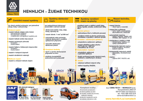 Odštěpný závod CEMA-TECH firmy HENNLICH s.r.o. nabízí služby v následujících oblastech: