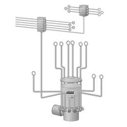 For multi-tubular systems is characteristic, that the pressure lubricant source (multi-outlet pump) is directly connected by the pipe with lubricated place. Multi-tubular systems are often combined with progressive dividers, which are designed to divide the lubricant from one pump outlet to more lubricated places. Progressive dividers can be ordered in one level eventually in more levels one after another.