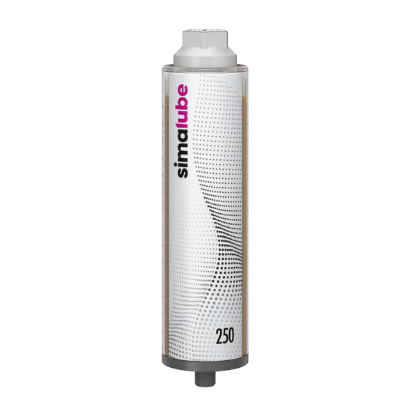 Automatické maznice SIMALUBE pracují na principu chemické reakce, při které se pevná látka umístěná v patroně v aktivačním šroubu mění na plyn, který se hromadí v tlakové komoře a tlačí na píst, následkem čehož je mazivo pod pístem vytlačováno z maznice do mazaného místa.